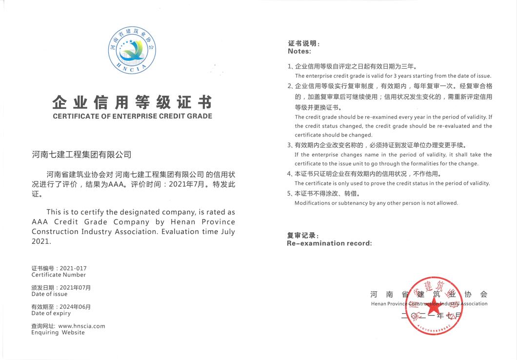 河南省AAA 企业信用等级证书202